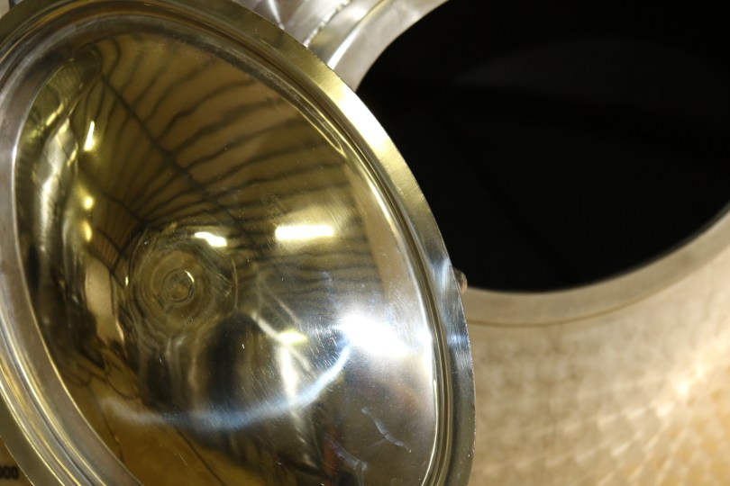 Using a smartphone torch to peep inside the wine barrel at Kingston Family Vineyards in Chile.
