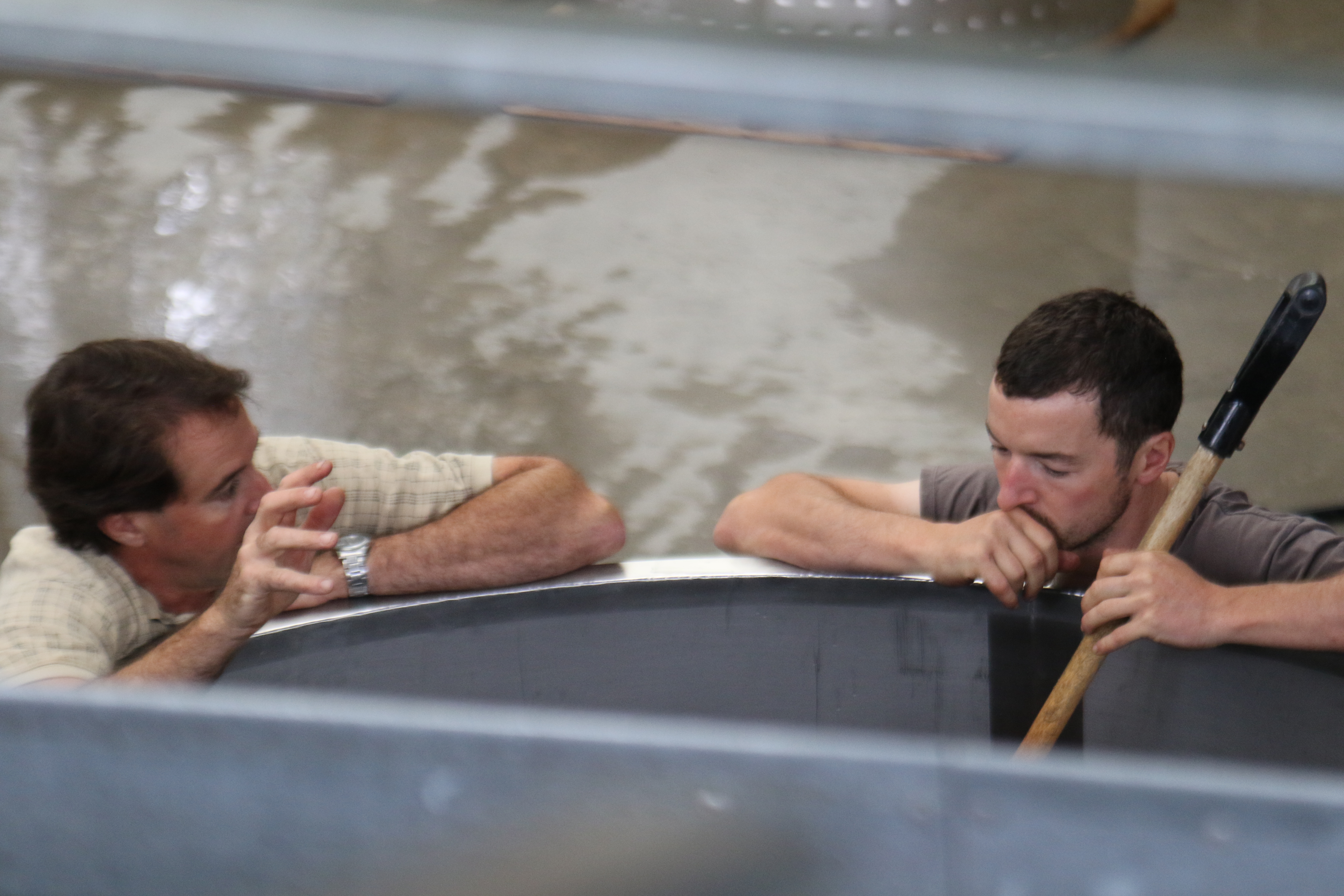 Winemaker Blair Walter discusses the fermenting grapes at the Felton Road winery in New Zealand.