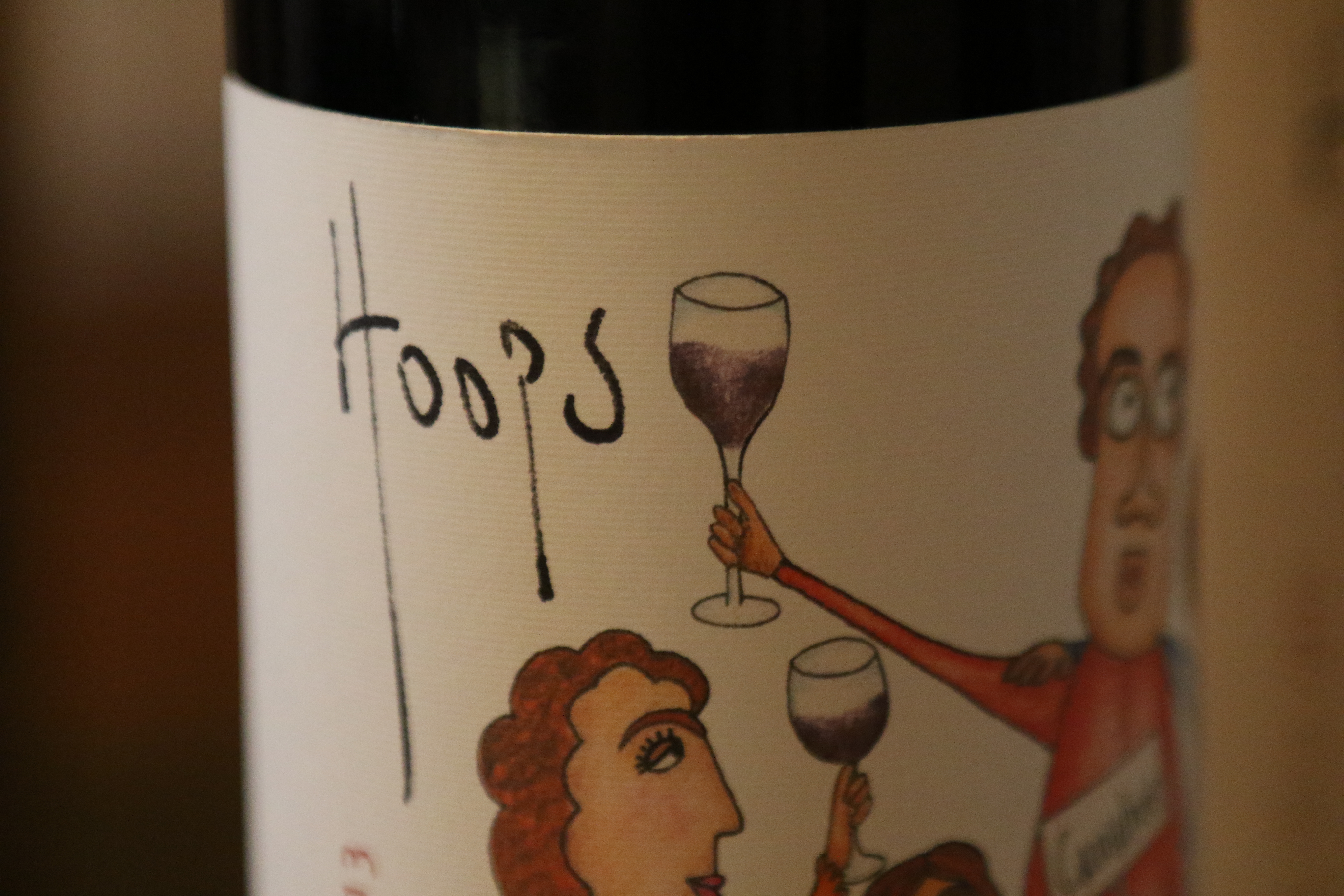 The Hoops wine bottle label showing Guy Hooper and his family.